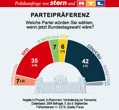 Drei Tage vor der Bundestagswahl 2005 wurden vom stern Umfrageergebnisse von